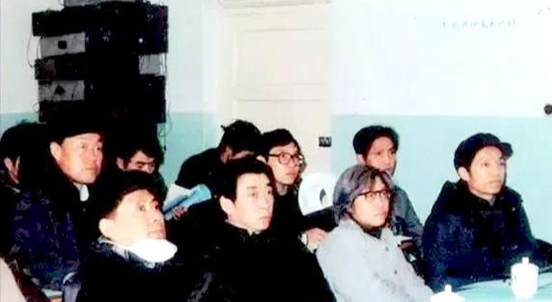 1986年1月,彭志忠(前排左一)不顾劝阻,带重病参加研究生答辩会。图为答辩会现场