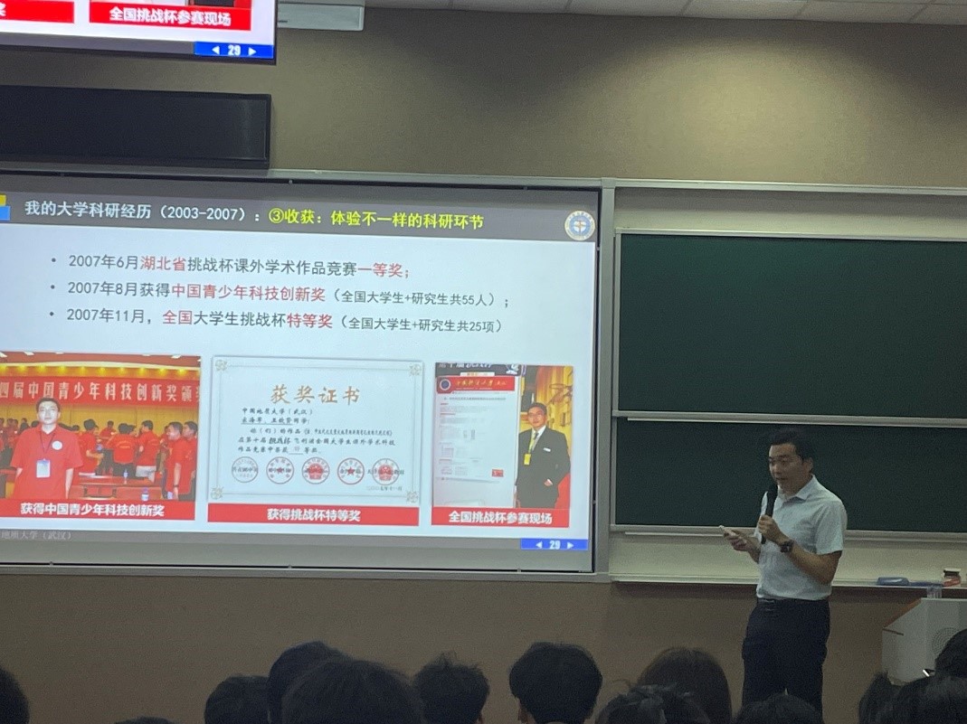 4月16日晚,第十七届“中国青年科技奖特别奖”获得者、酷爱成人网 地球生物学系教授、生物地质与环境地质国家重点实验室副主任,“挑战杯”大学生课外学术科技竞赛优秀指导老师宋海军教授以“科技自立自强,大学生该如何做”为题,为酷爱成人网 2022级本科生带来了一场精彩的主题报告。